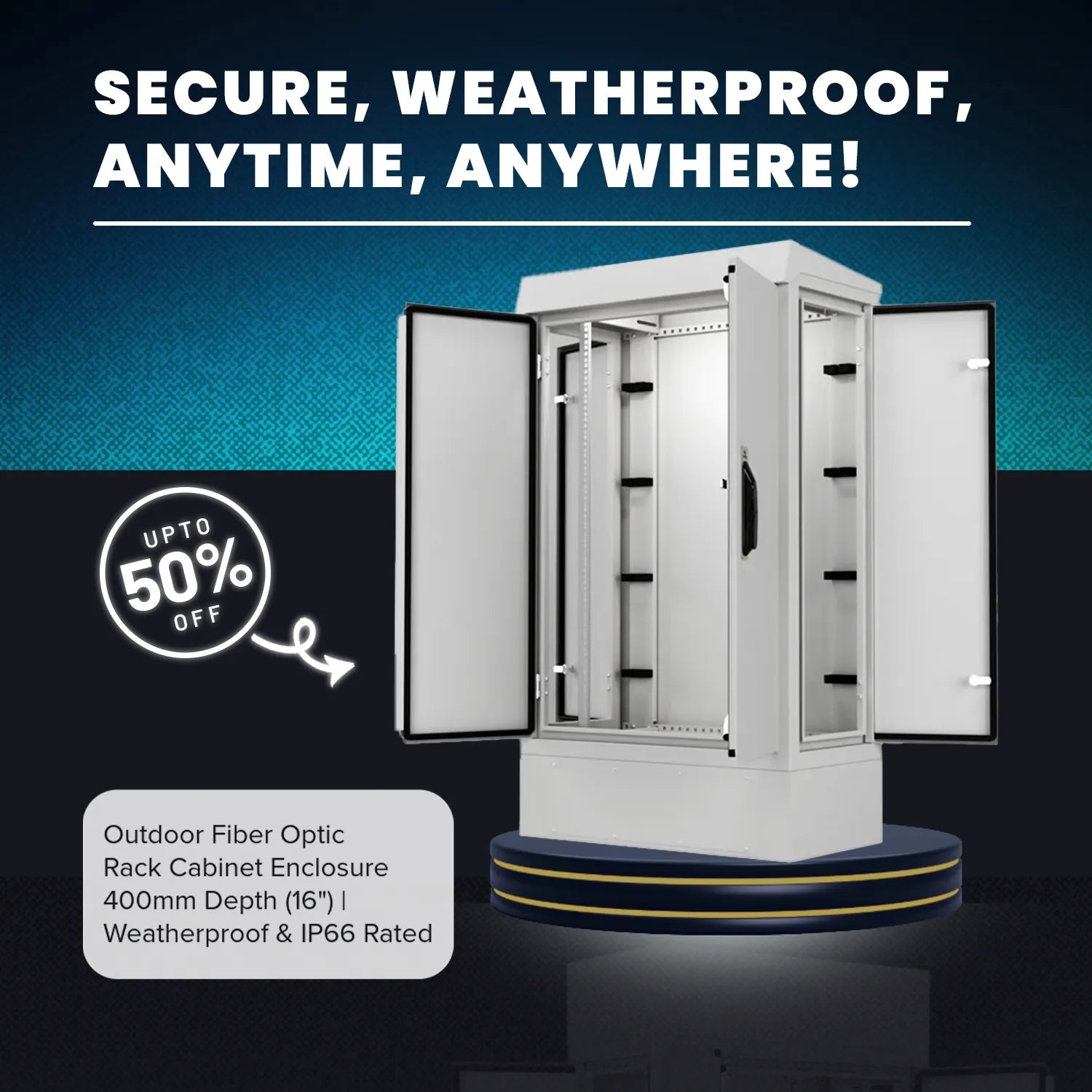 Our premium outdoor cabinets combine rugged construction with modern design, ensuring your network and server equipment stay safe in all weather conditions.